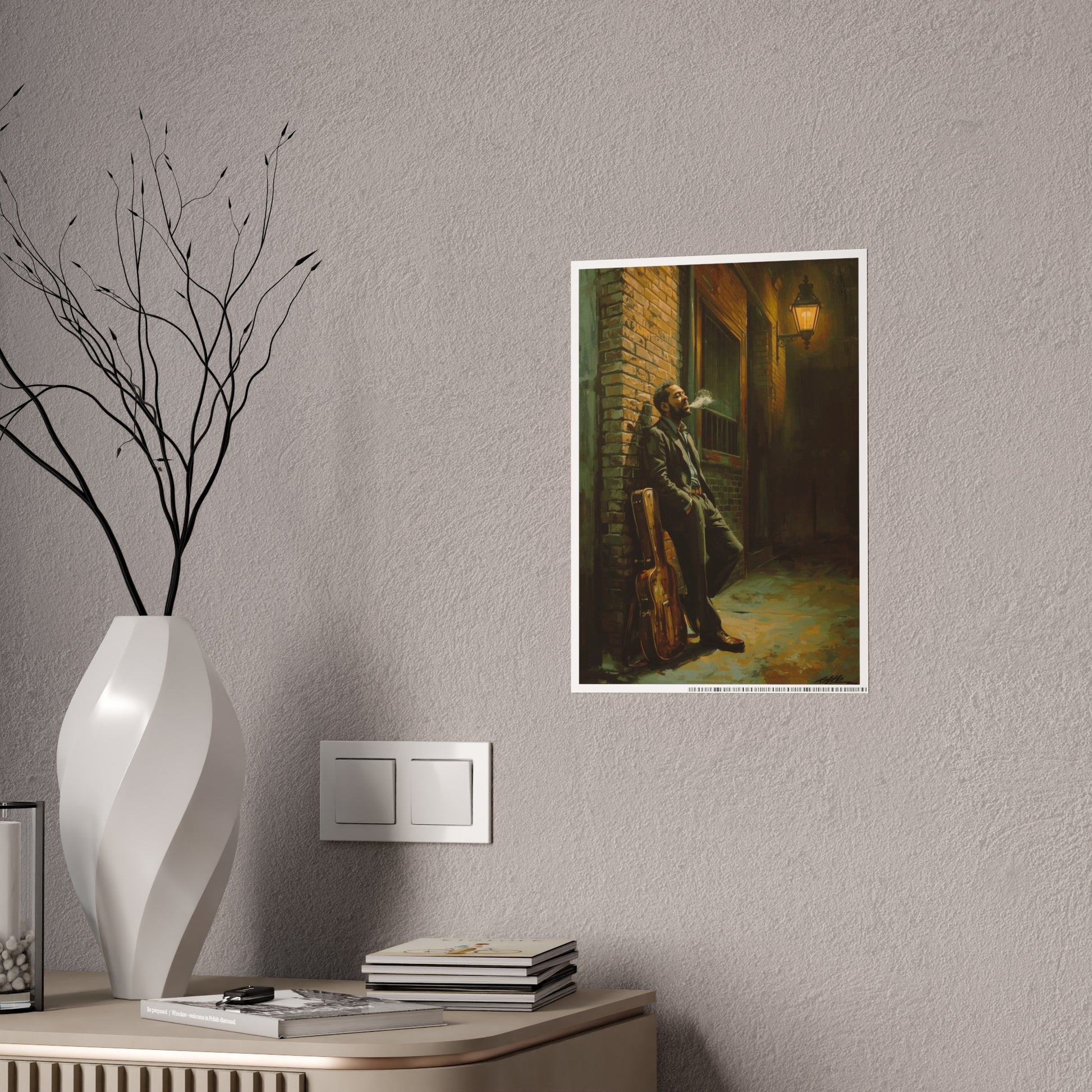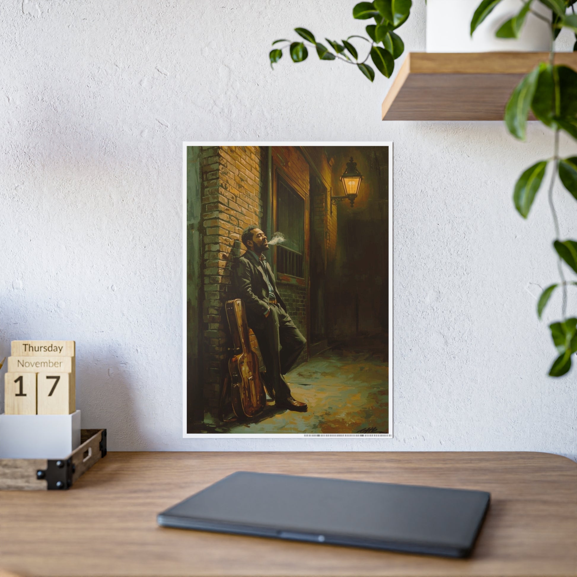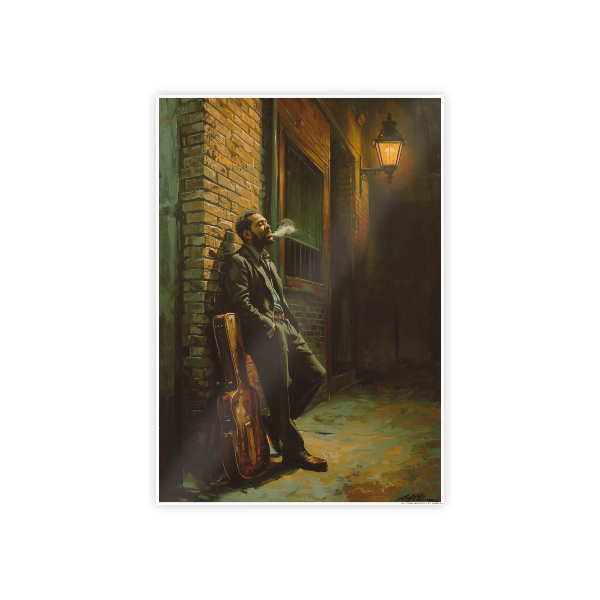 Set the mood with After the Gig, a striking poster that embodies the allure of jazz nights and city streets. Featuring bold contrast, deep hues, and a contemplative musician outside a glowing jazz club, this artwork tells a story of music, solitude, and style. Printed on premium poster stock, it makes a stunning statement piece for your living room, studio, or office. Ideal for jazz fans and lovers of expressive, urban-inspired art.