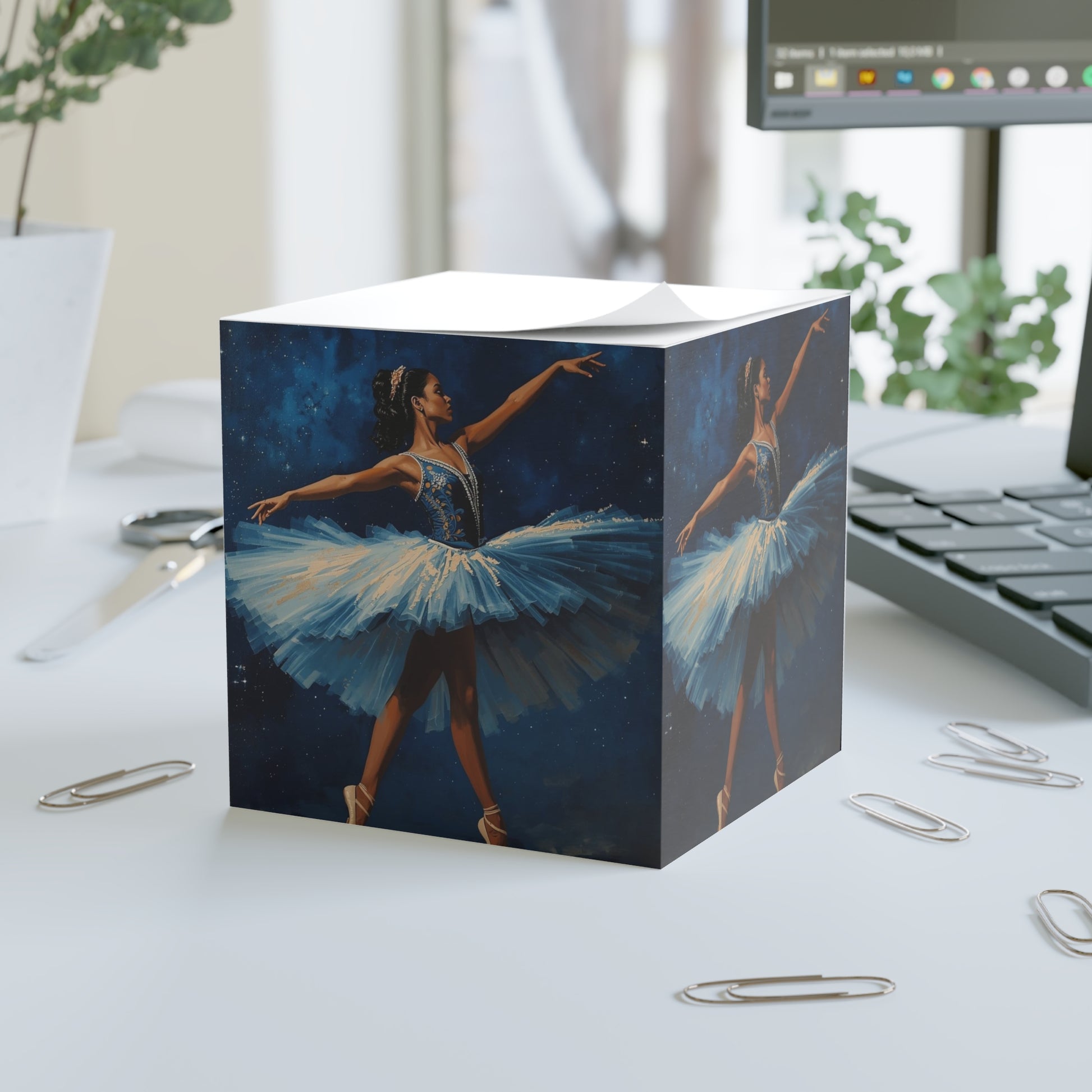 Bring a touch of grace and inspiration to your desk with the Dancing in the Stars Note Cube. Featuring a stunning design of a poised ballerina illuminated against a star-filled night sky, this note cube adds both elegance and artistry to your everyday workspace. Each sheet offers a beautiful reminder of movement, balance, and creativity—perfect for jotting down quick notes, reminders, or messages.
