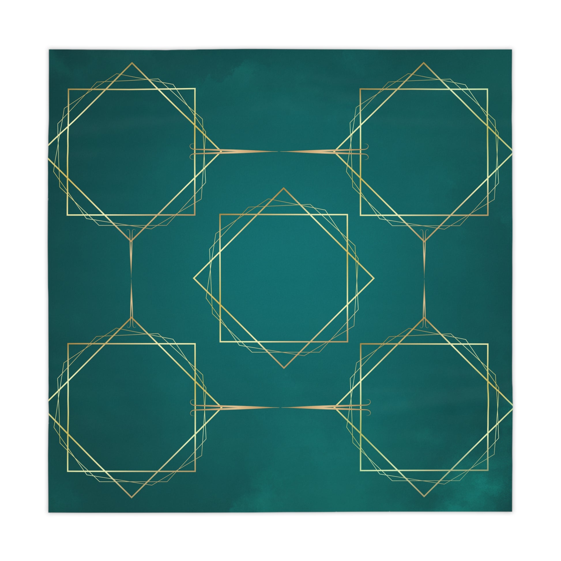 The intricate gold geometric patterns create a captivating contrast against the luscious dark teal background, infusing your home with a sense of elegance and warmth. Perfect for adding a touch of sophistication to any room, this design seamlessly blends contemporary style with classic luxury, making it a versatile addition to both modern and traditional interiors.