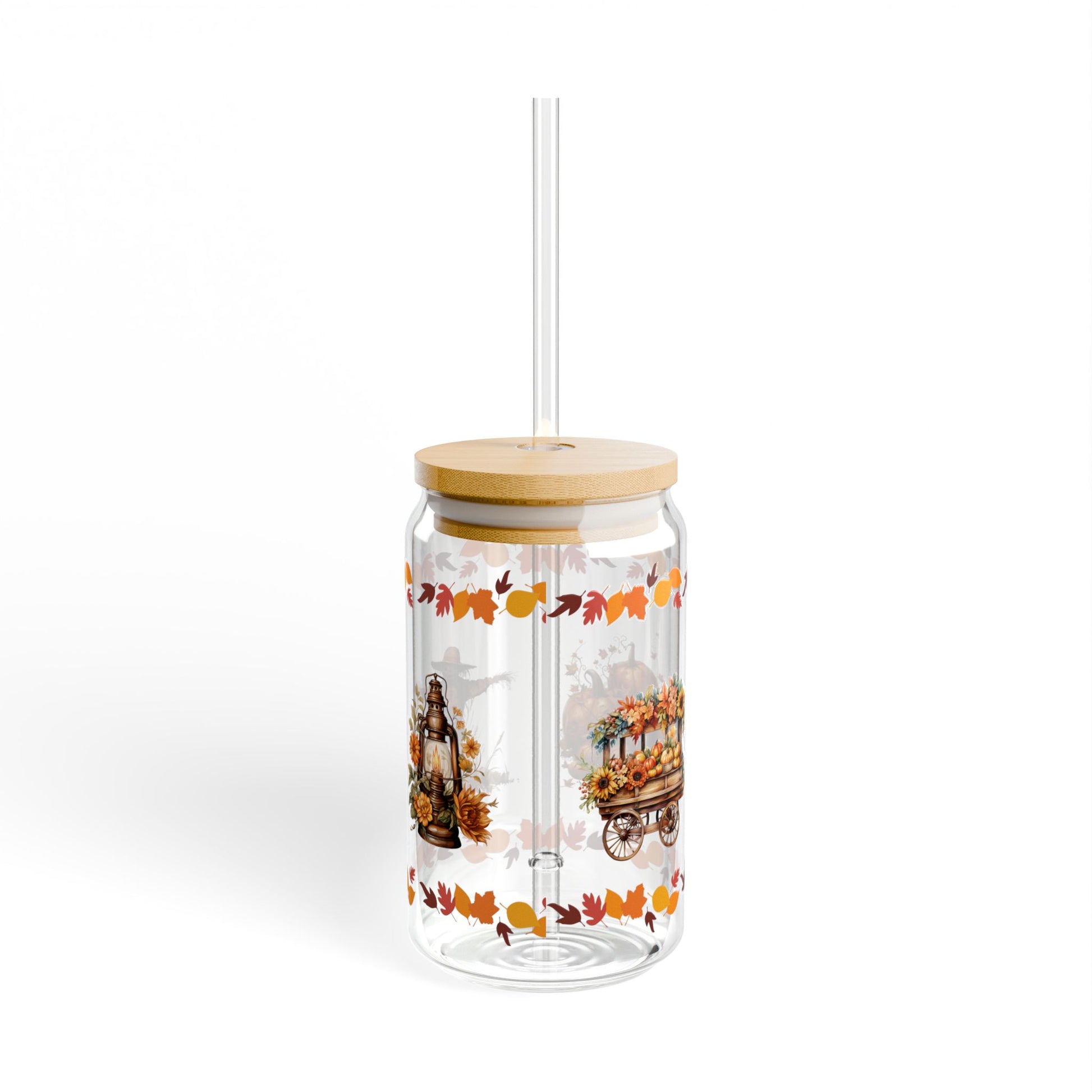 Quench your thirst in style with our autumn-inspired16oz Sipper Glass. Made from clear tempered glass, it's durable, sleek, and perfect for refreshing cocktails, juices, or any beverage you fancy. Choose between the classic version or opt for the version equipped with a Gasket-push Bamboo lid and Tritan plastic straw for added convenience. This sipper glass is FDA Certified, BPA Free, and Cal. Prop 65 compliant, ensuring your safety and peace of mind with every sip.