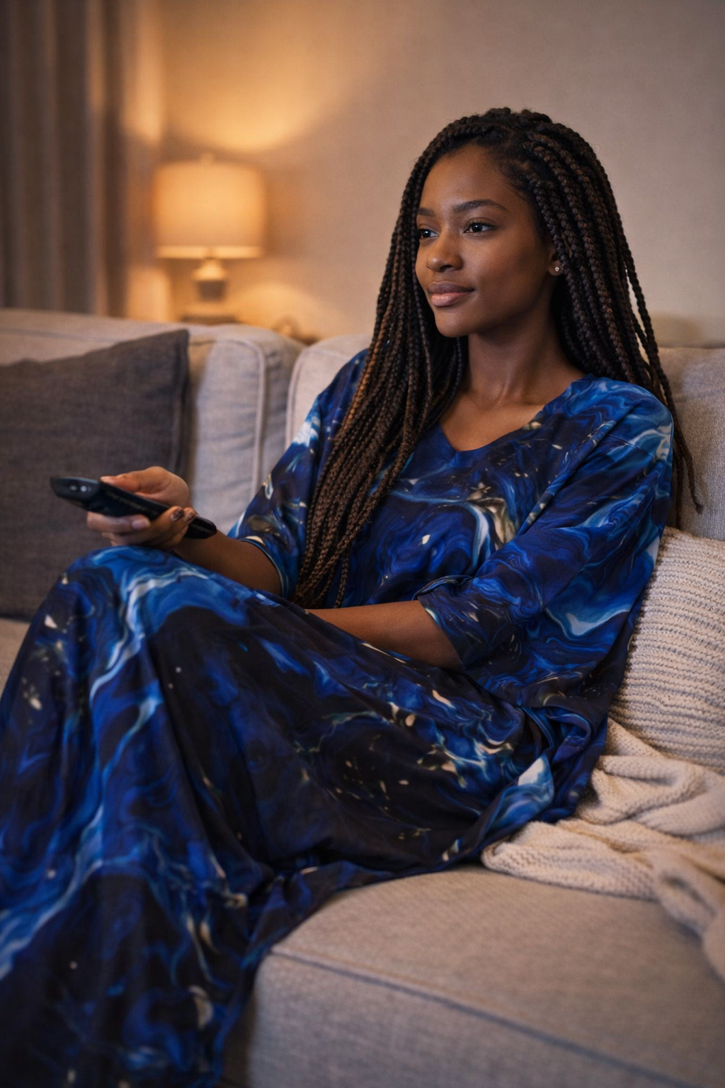 The Indigo Motion Loose Knit Jersey Kaftan is the ultimate expression of relaxed luxury. Featuring flowing shades of deep blue with fluid, artistic motion, this kaftan drapes effortlessly over the body for a flattering, free-spirited silhouette. The loose-knit jersey fabric is soft, breathable, and designed for all-day comfort. Whether styled as resort wear, elevated loungewear, or an effortless statement piece, this kaftan embodies confidence, ease, and modern femininity.