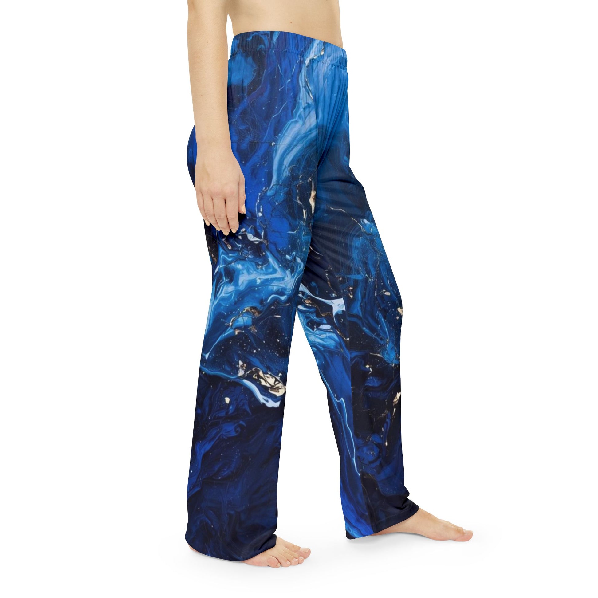 Unwind in style with the Indigo Motion Pajama Bottoms. Designed for comfort without compromise, these pajama pants feature a relaxed fit and ultra-soft fabric that feels gentle against the skin. The flowing abstract blue design adds a touch of elegance, making them perfect for evenings at home, weekend lounging, or cozy mornings.