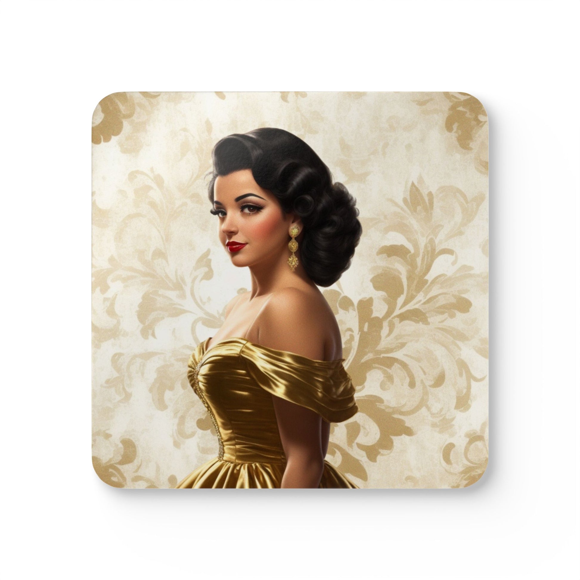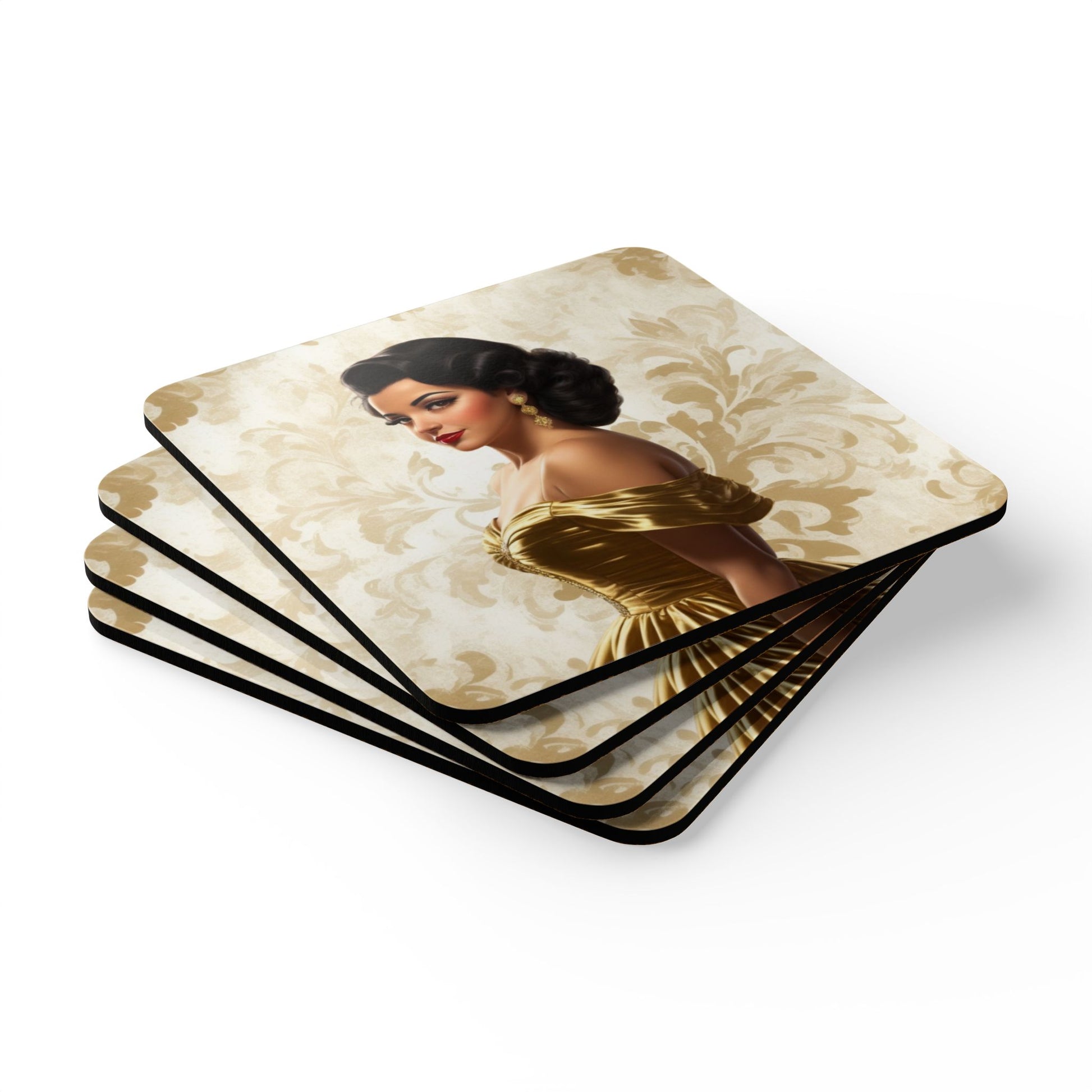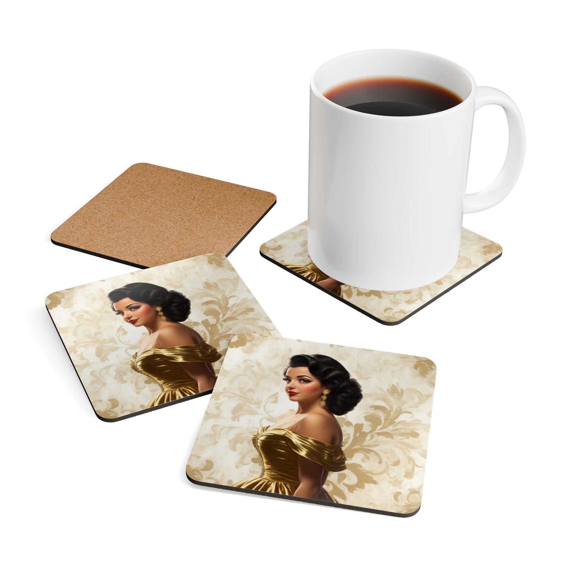 Retro Glam Girls "Ana Maria" Corkwood Coaster Set