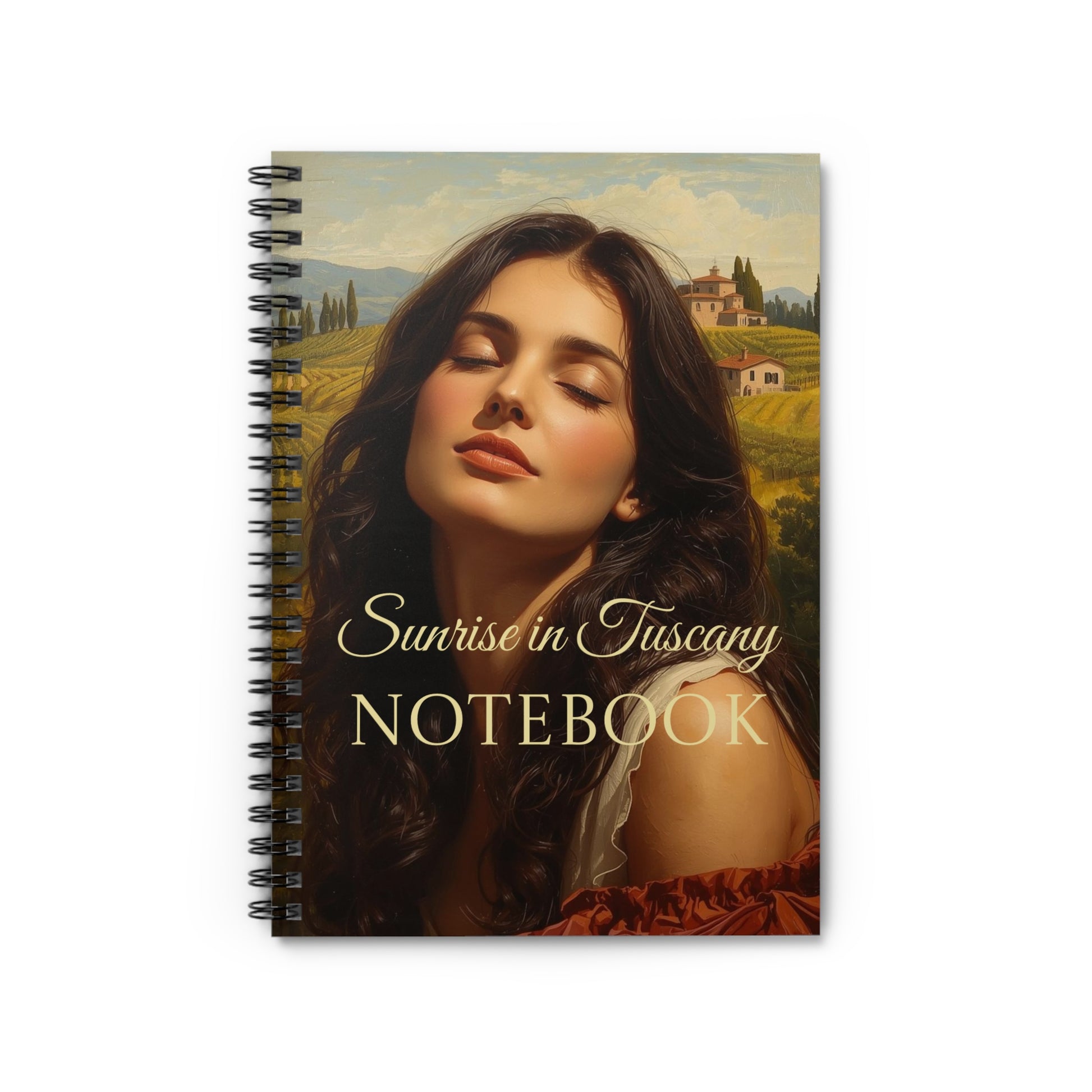 Capture your thoughts, dreams, and daily inspirations in this elegant notebook featuring Sunrise in Tuscany, a design that evokes the warmth of golden vineyards and timeless beauty of the Italian countryside. The serene imagery of a sunlit morning and tranquil figure invites a sense of calm and creativity, making it perfect for journaling, note-taking, or planning your next adventure.